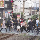 大阪市都島区の路上で男性を取り囲む10人ほどの警官。泥酔し暴れる男性に業を煮やしたのか、パトカーに押し込もうと、一人の警官が頭を押さえつける。